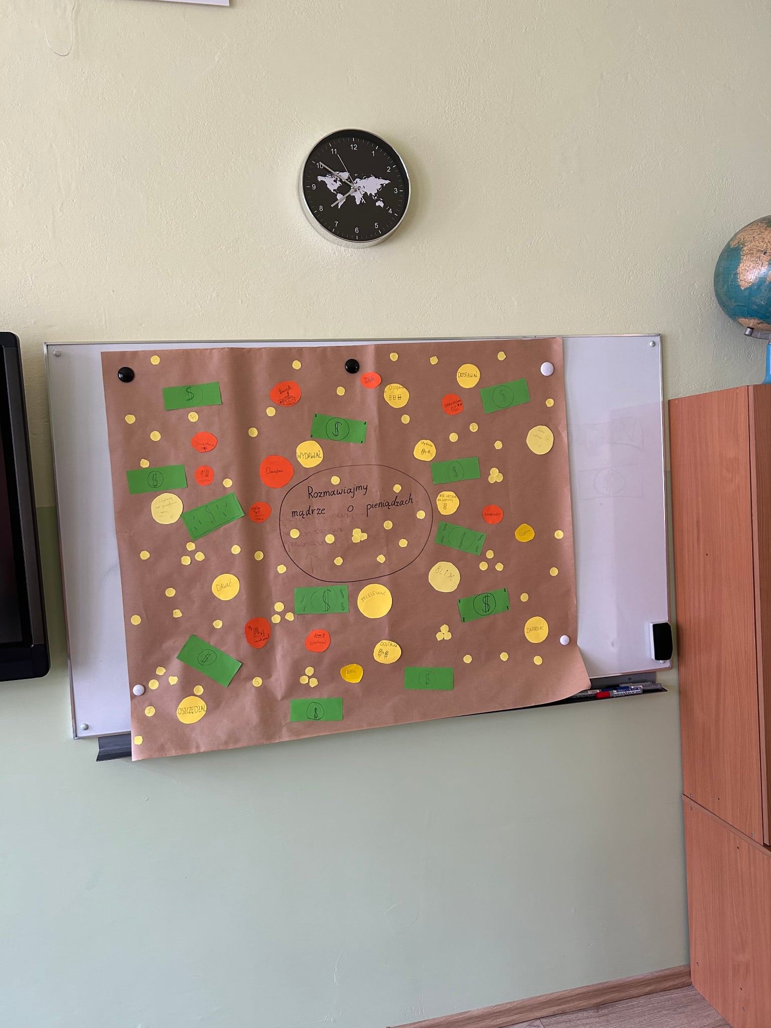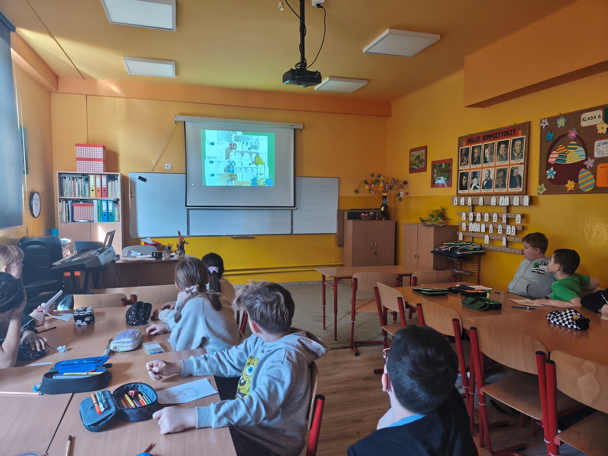 Uczniowie naszej szkoły dyskutowali na temat wartości pieniądza, oszczędzania czy rozsądnego wydawania własnych oszczędności. Ponadto uczniowie klas czwartych zostali zapoznani z historią pieniądza, projektowali również monetę dziecięcą zachęcającą do oszczędzania. Uczniowie klasy piątej dowiedzieli się, jak wytwarza się monety oraz banknoty i co oprócz monet produkuje się w mennicy. Na zajęciach świetlicowych dzieci wykonały metodą mapy myśli plakat pt.: "Rozmawiajmy mądrze o pieniądzach".