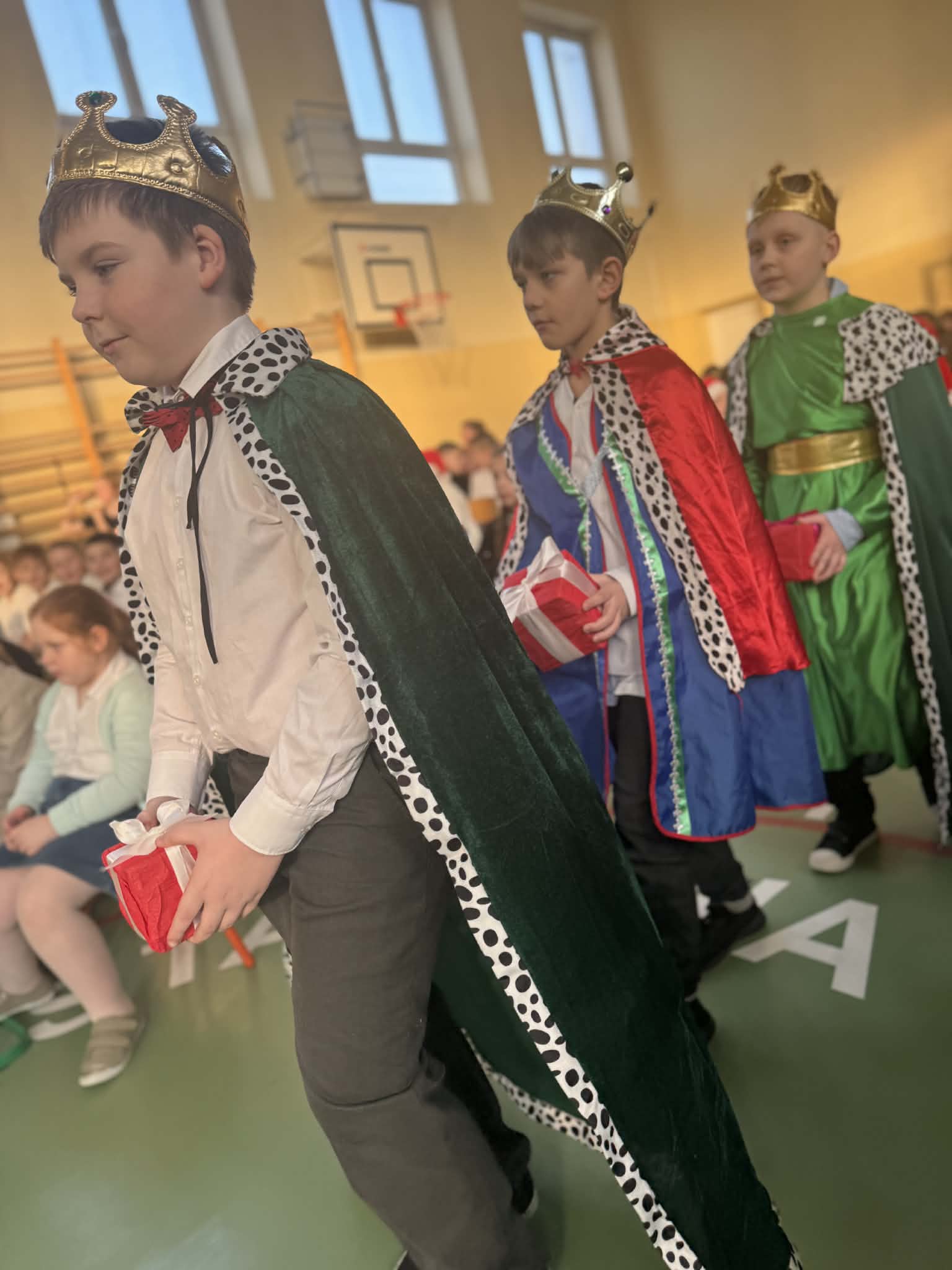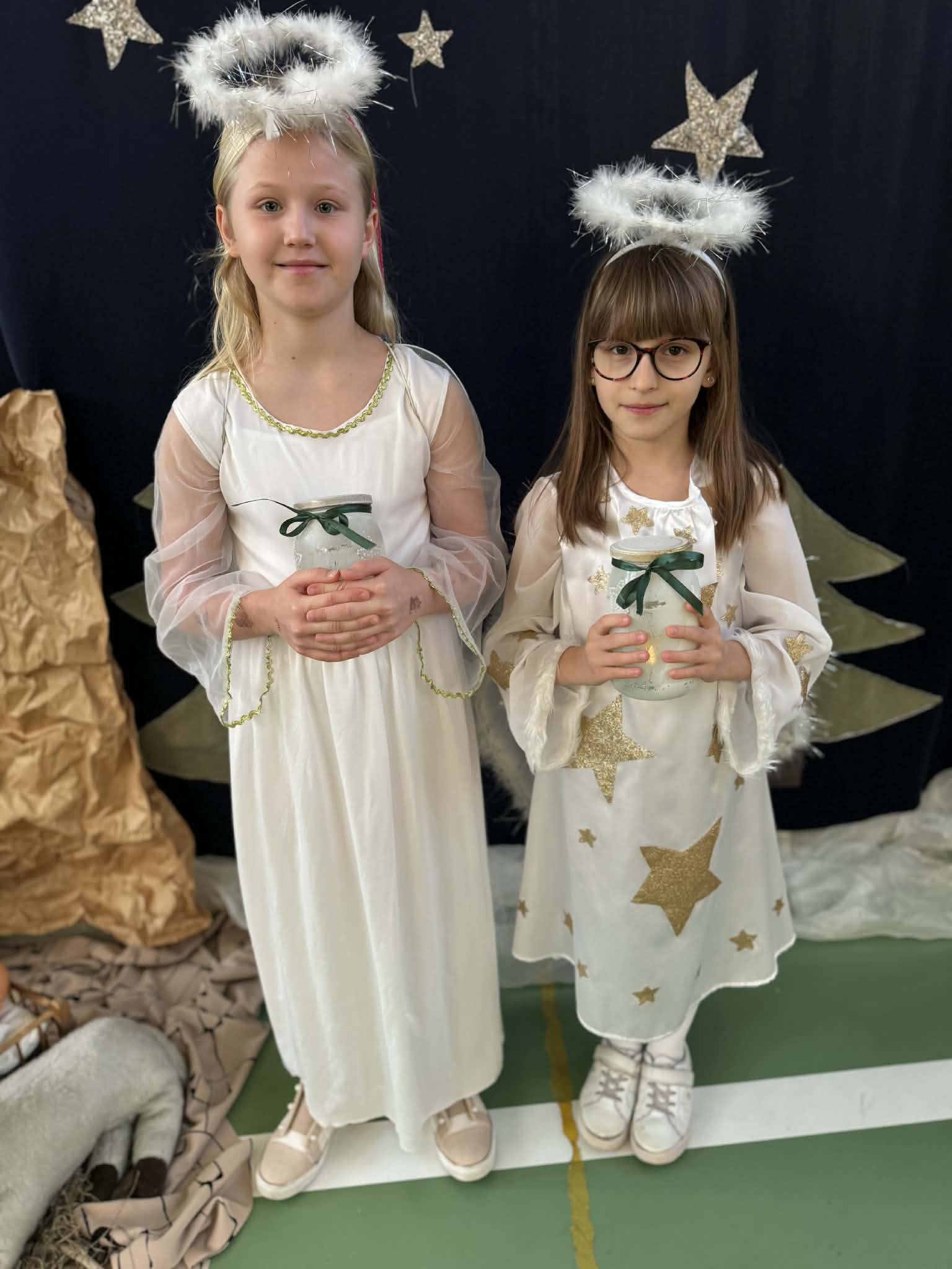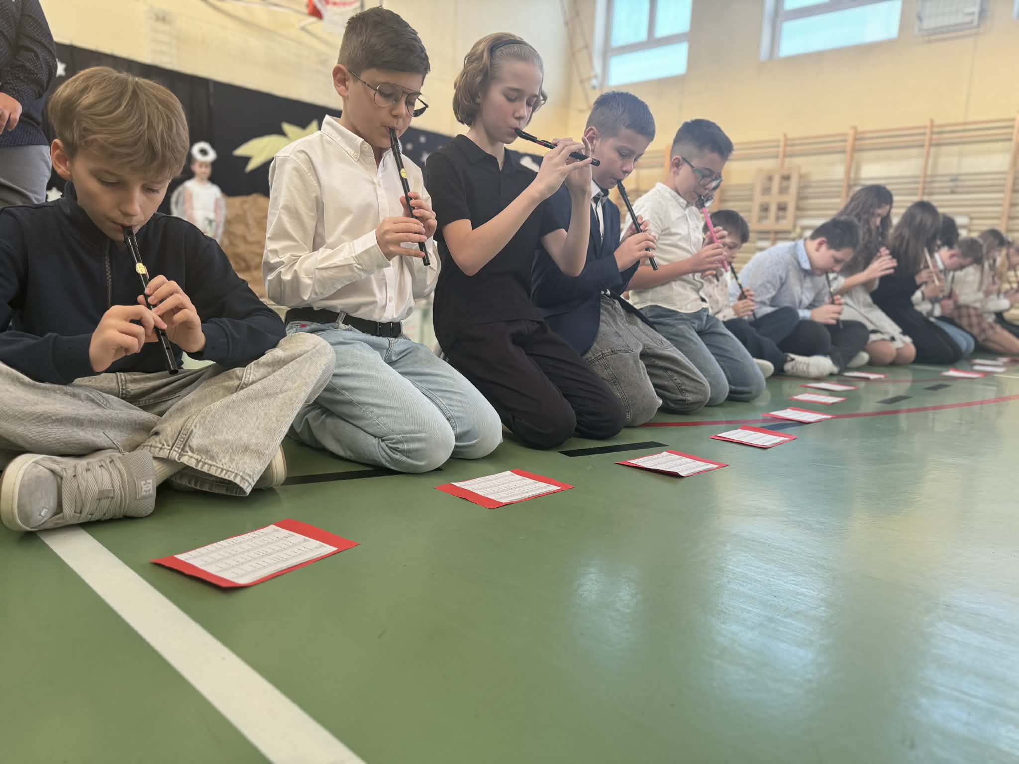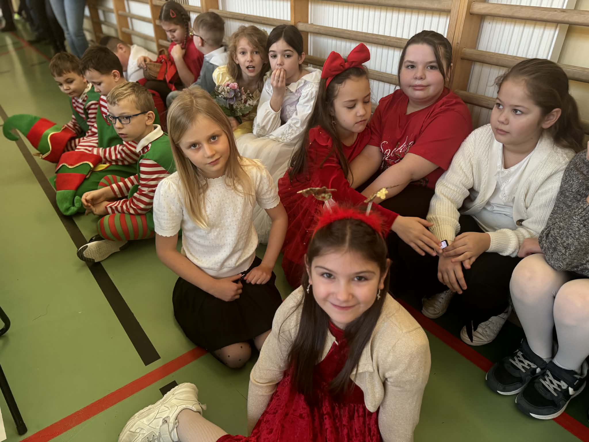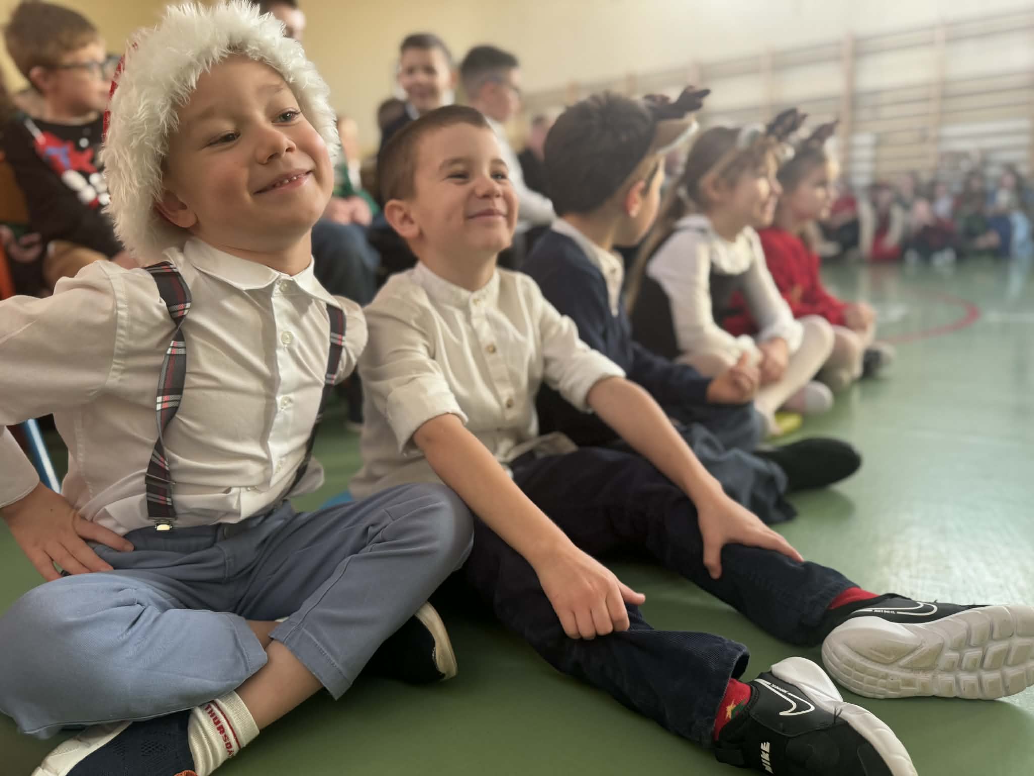 Przedstawienie jasełkowe przygotowane przez uczniów klas drugiej i trzeciej wprowadziło wszystkich w wyjątkowy, świąteczny nastrój. Jasełka miały klasyczny charakter – w centrum wydarzeń znalazła się stajenka betlejemska z Maryją, Józefem i Dzieciątkiem Jezus. Wyjątkowym elementem widowiska były jednak odwiedziny nietypowych gości – do stajenki przybyły również postacie znane z bajek, co dodało całemu przedstawieniu oryginalności i radosnego charakteru. Całość uatrakcyjniła piękna oprawa muzyczna. Dzieci z wielkim zaangażowaniem śpiewały kolędy, które poruszyły serca publiczności. Uczniowie klasy szóstej grali na flażoletach, a uczniowie klasy siódmej na cymbałkach tworząc wyjątkowy świąteczny akompaniament dziewczynce z klasy piątej, która śpiewała kolędę. Szczególne wzruszenie wzbudził występ uczennicy klasy drugiej, która zagrała na skrzypcach. Przedstawienie było dowodem na to, że wspólna praca uczniów z różnych klas może zaowocować pięknym i wzruszającym wydarzeniem, które na długo pozostanie w pamięci widzów.