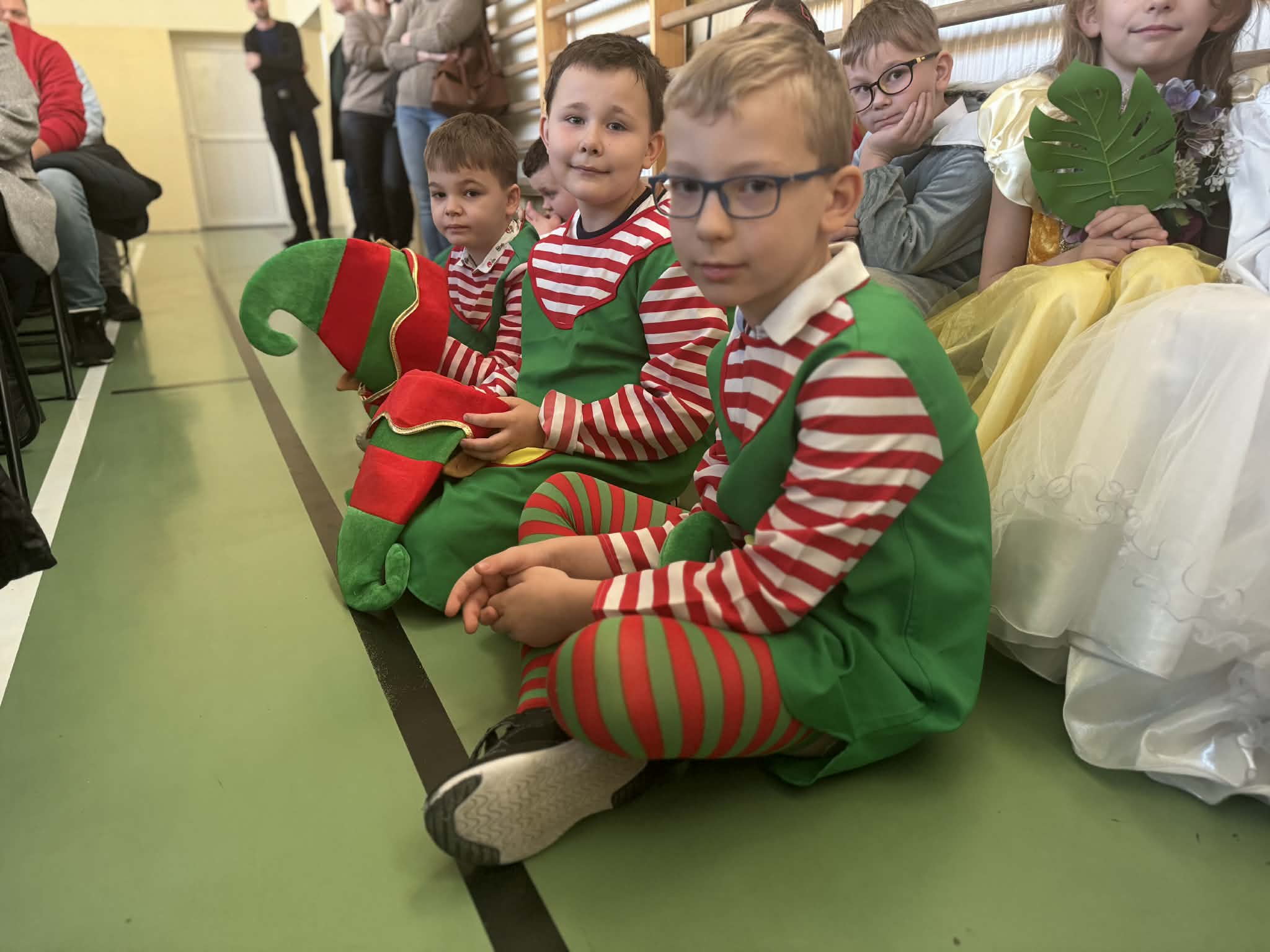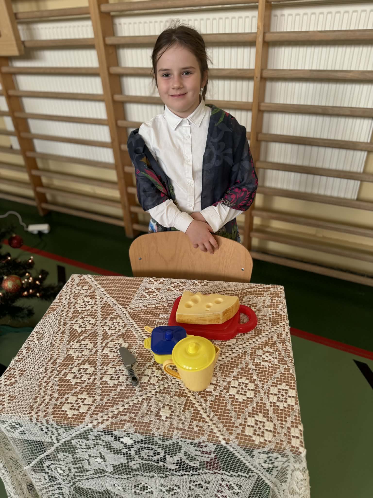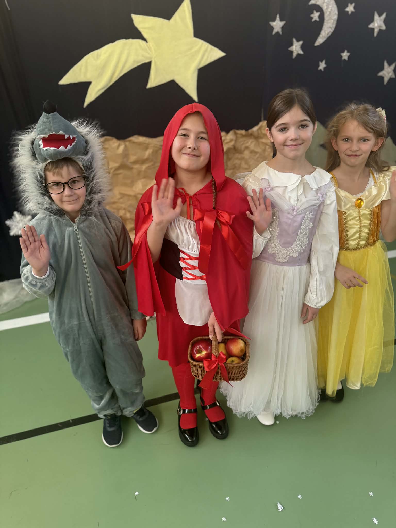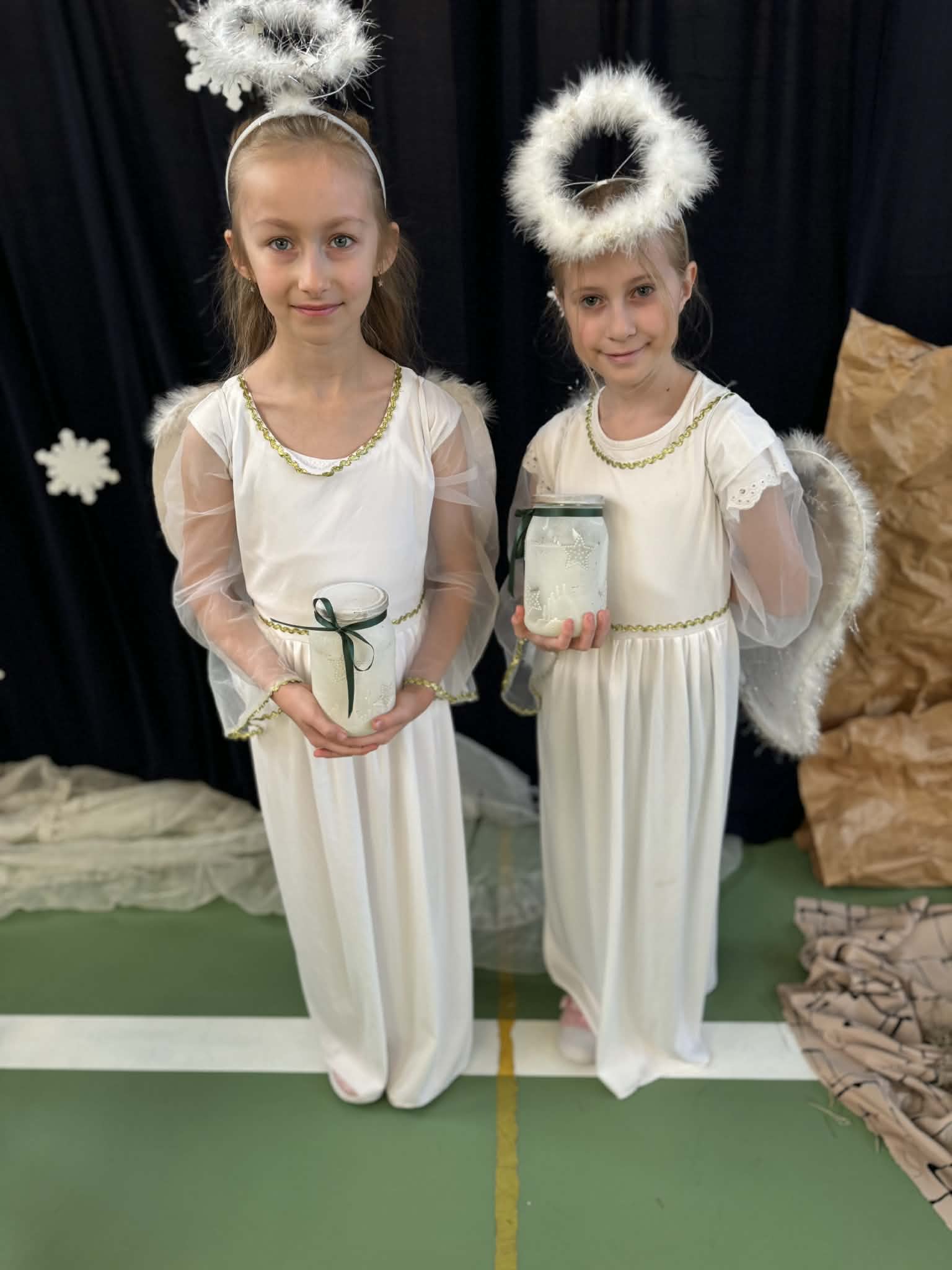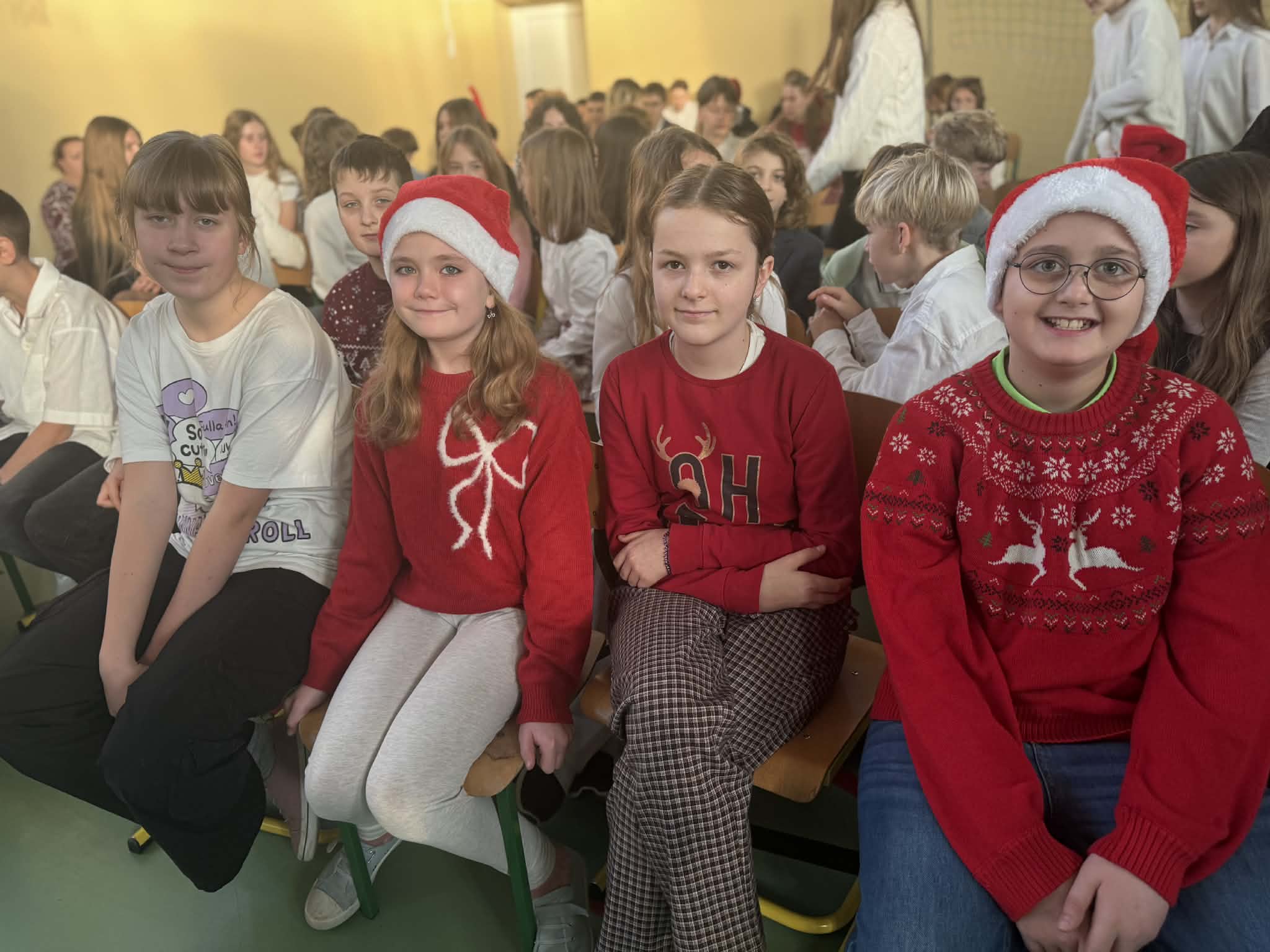 Przedstawienie jasełkowe przygotowane przez uczniów klas drugiej i trzeciej wprowadziło wszystkich w wyjątkowy, świąteczny nastrój. Jasełka miały klasyczny charakter – w centrum wydarzeń znalazła się stajenka betlejemska z Maryją, Józefem i Dzieciątkiem Jezus. Wyjątkowym elementem widowiska były jednak odwiedziny nietypowych gości – do stajenki przybyły również postacie znane z bajek, co dodało całemu przedstawieniu oryginalności i radosnego charakteru. Całość uatrakcyjniła piękna oprawa muzyczna. Dzieci z wielkim zaangażowaniem śpiewały kolędy, które poruszyły serca publiczności. Uczniowie klasy szóstej grali na flażoletach, a uczniowie klasy siódmej na cymbałkach tworząc wyjątkowy świąteczny akompaniament dziewczynce z klasy piątej, która śpiewała kolędę. Szczególne wzruszenie wzbudził występ uczennicy klasy drugiej, która zagrała na skrzypcach. Przedstawienie było dowodem na to, że wspólna praca uczniów z różnych klas może zaowocować pięknym i wzruszającym wydarzeniem, które na długo pozostanie w pamięci widzów.