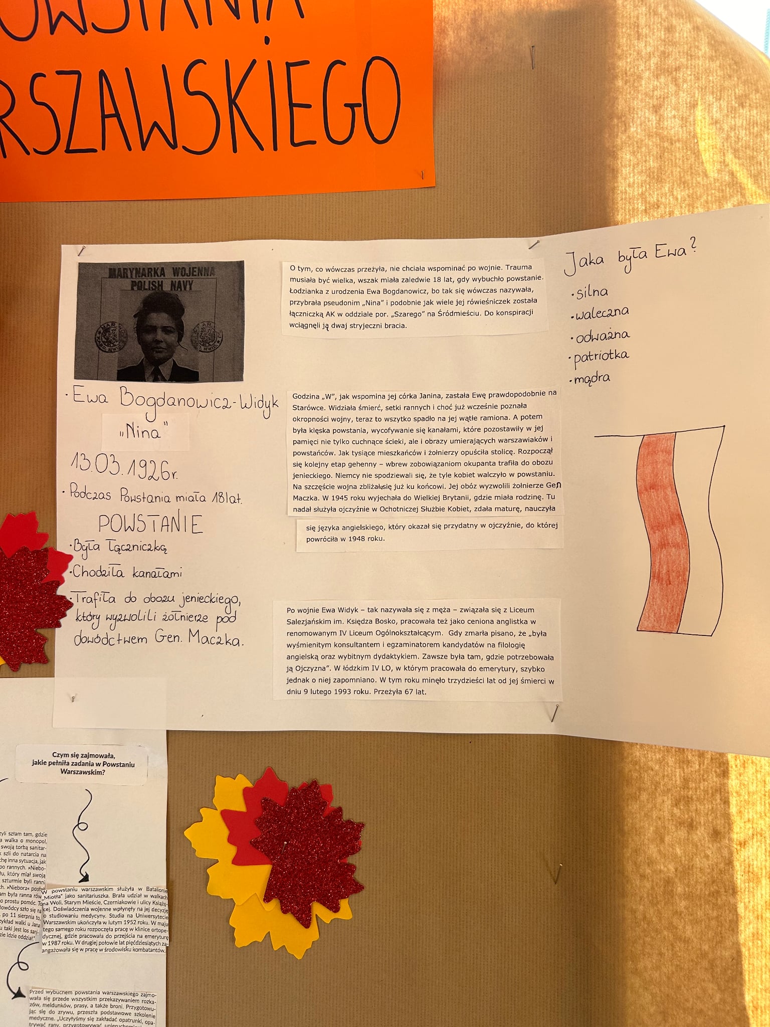 Uczniowie naszej szkoły wzięli udział w ogólnopolskiej kampanii Bohateron 2025. Celem projektu jest wzmacnianie poczucia tożsamości narodowej i budowanie wrażliwości społecznej. Tegoroczna edycja była poświęcona odważnym kobietom – uczestniczkom powstania. Dzieci, podczas zajęć poznały sylwetki kobiet i ich zadania. Starsi uczniowie na podstawie słuchowiska i źródeł historycznych wykonali plakat przedstawiający Karty Bohaterek, młodsi zaprojektowali unikatowe odznaczenia.