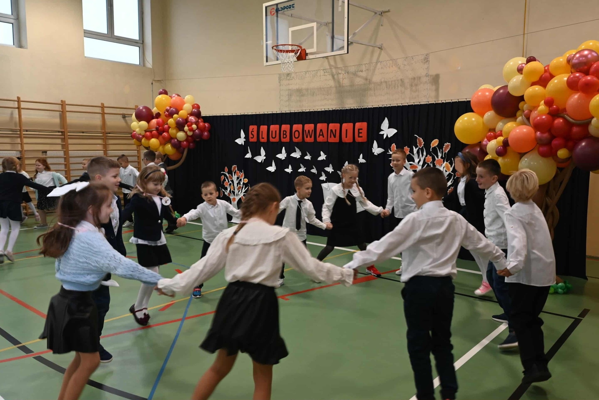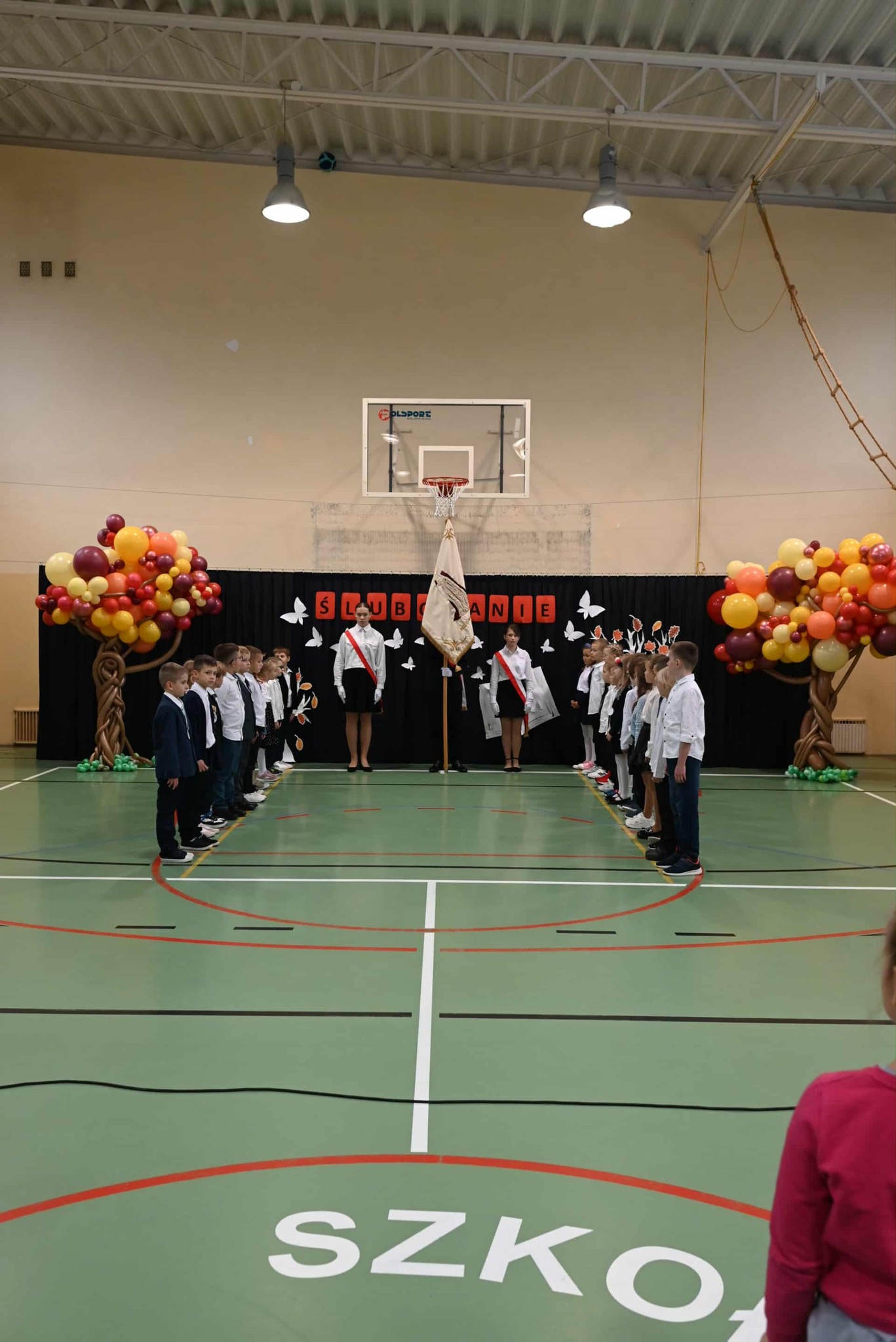 24 października 2025r. miała miejsce niezwykle ważna dla życia szkoły, uroczystość ślubowania i pasowania uczniów klasy pierwszej. To emocjonujące wydarzenie jest piękną, szkolną tradycją kultywowaną od wielu lat. Pierwszoklasiści przygotowywali się do tego dnia wytrwale i starannie pod kierunkiem swoich pań. Mimo stresu związanego z publicznym występem, dzieci doskonale sobie poradziły i udowodniły, że są gotowe, aby stać się stuprocentowymi uczniami. Podczas uroczystości pokazali, że potrafią pięknie śpiewać, recytować wiersze i tańczyć.