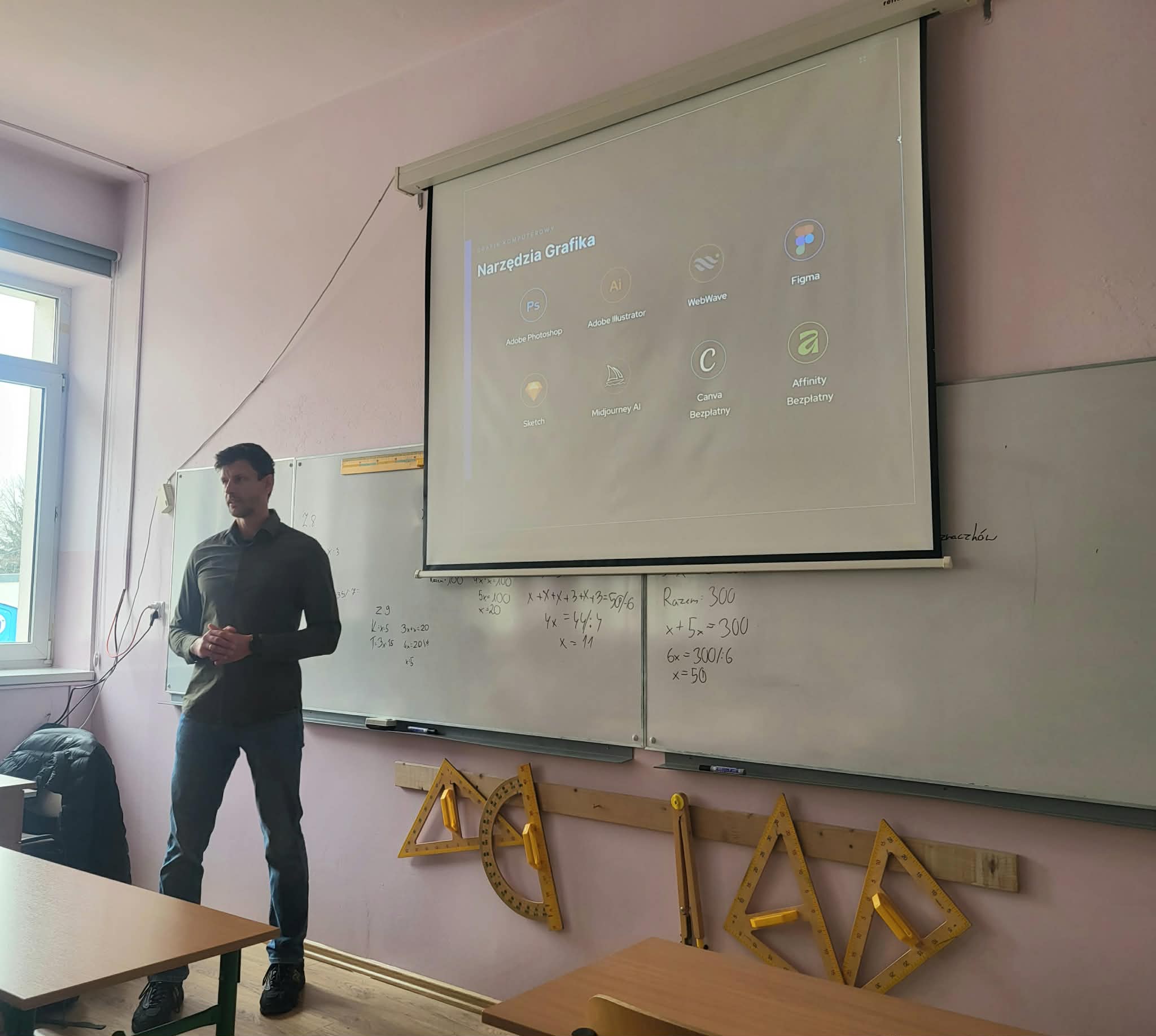 Podczas spotkania uczniowie dowiedzieli się, na czym polega praca grafika komputerowego, jakie narzędzia są wykorzystywane w codziennych zadaniach oraz jak wygląda współpraca z klientami i zespołem projektowym. Pan Piotr podkreślił znaczenie kreatywności, systematyczności i ciągłego uczenia się, zwracając uwagę na to, że branża IT i grafiki bardzo dynamicznie się rozwija.